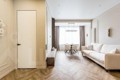 Выполнена дизайнерская отделка с использованием дорогостоящих материалов, светлый интерьер оформлен в стиле современной классики и украшен
