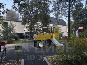 Въезд на территорию дома под шлагбаум, во дворе дома детская площадка.
