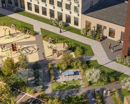 Проект состоит из трёх 17-этажных корпусов с просторными лобби с кондиционерами, а также дворами-парками с Wi-Fi. На первых этажах откроются магазины, кафе, салоны красоты и полезные сервисы для комфортной жизни.