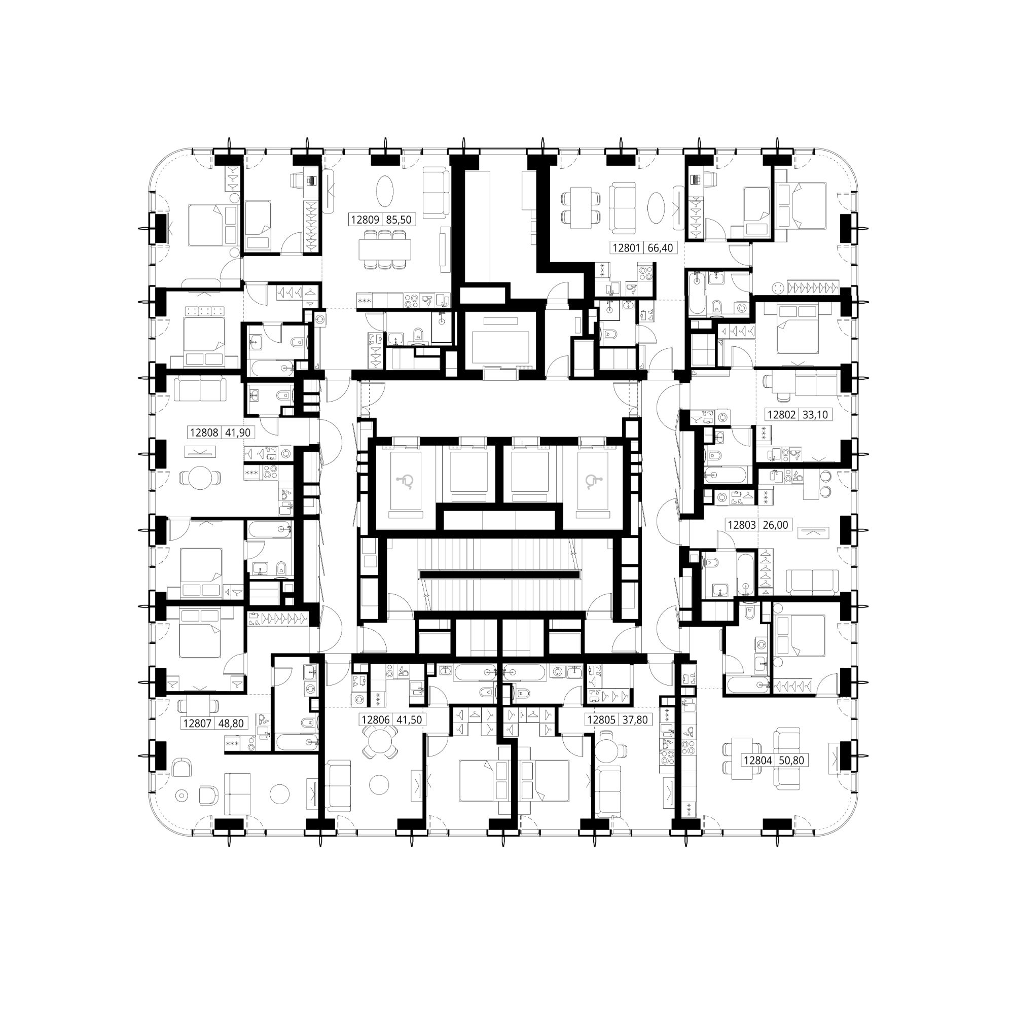 Продаётся 1-комнатная квартира общей площадью 33.10 м² без отделки в ЖК City Вау, квартале Pacific, на 28-м этаже 59 этажного дома.