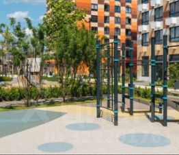 На территории современные детские и спортивные площадки, ландшафтный дизайн с дорожками и лавочками для отдыха.