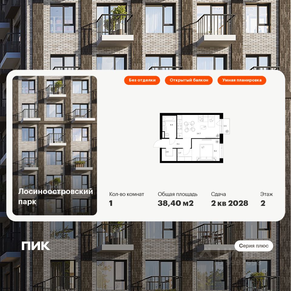 Продаётся 1-комн. квартира площадью 38,4 кв.м на 2 этаже 14 этажного дома (Корпус 2.3, Секция 1) проекта ПИК Лосиноостровский парк. Светлый просторный подъезд на уровне земли, функциональная планировка, большие окна, без отделки.