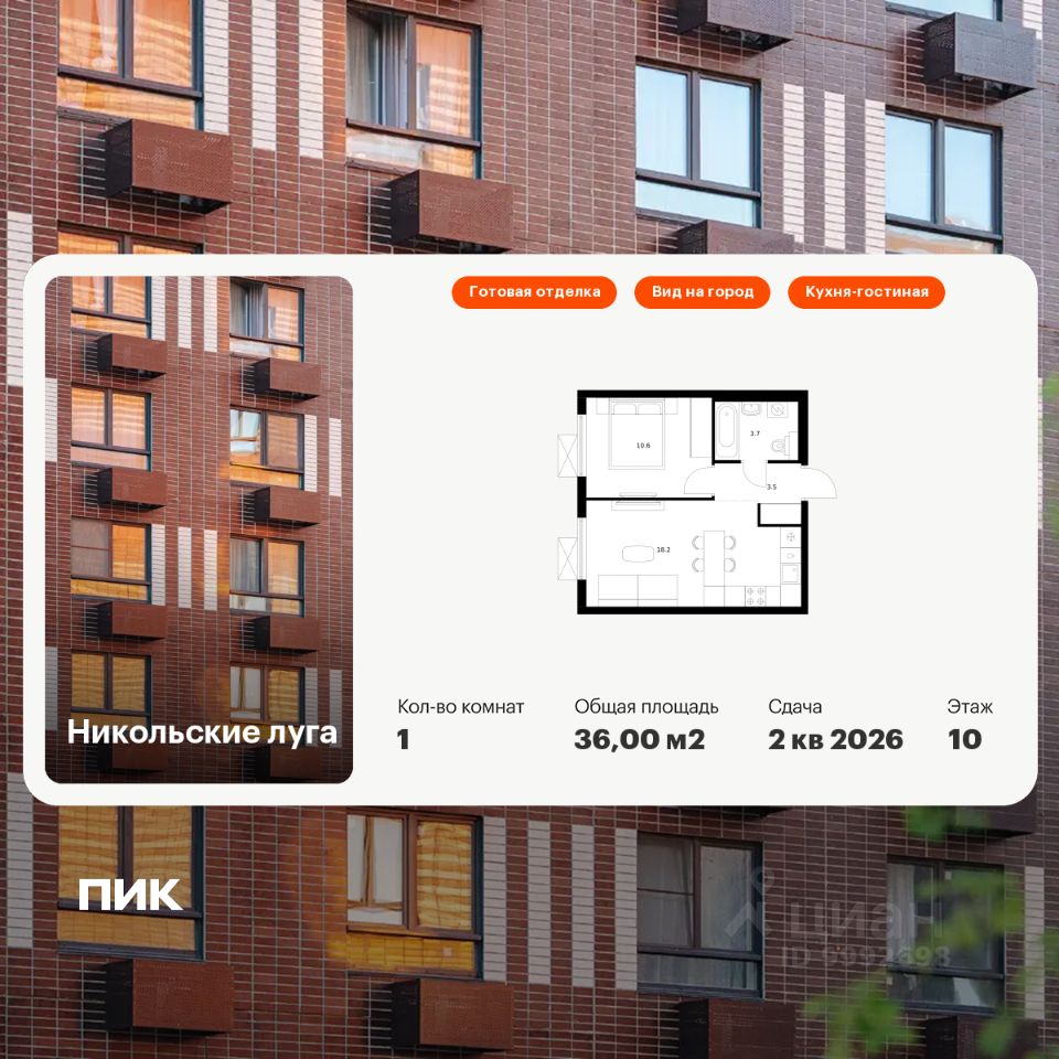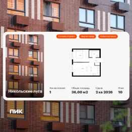 Продаётся 1-комн. квартира площадью 36 кв.м на 10 этаже 17 этажного дома (Корпус 4, Секция 3) проекта ПИК Никольские луга. Светлый просторный подъезд на уровне земли, функциональная планировка, большие окна, c отделкой.