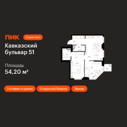 Продаётся 2-комн. квартира площадью 54,2 кв.м на 13 этаже 23 этажного дома (Корпус 3.2, Секция 2) проекта ПИК Кавказский бульвар 51. Светлый просторный подъезд на уровне земли, функциональная планировка, большие окна, c отделкой.