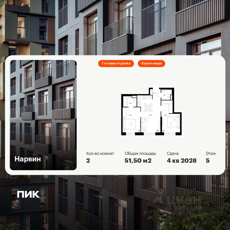 Новостройка! Продается 2-комн. кв-ра площадью 51,5 кв.м, (Корпус 1.3, Секция 3) 5 этаж 38-этажного дома в Нарвин от ПИК. Новый проект ПИК Серии плюс "Нарвин" возводится в Головинском районе Москвы.
