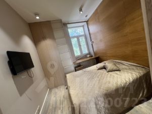 СПАЛЬНЯ отдельно, с мебелью: двухспальная кровать, шкаф встроенный, окно во двор в сторону Арбата. ТВ. журнальный стол.