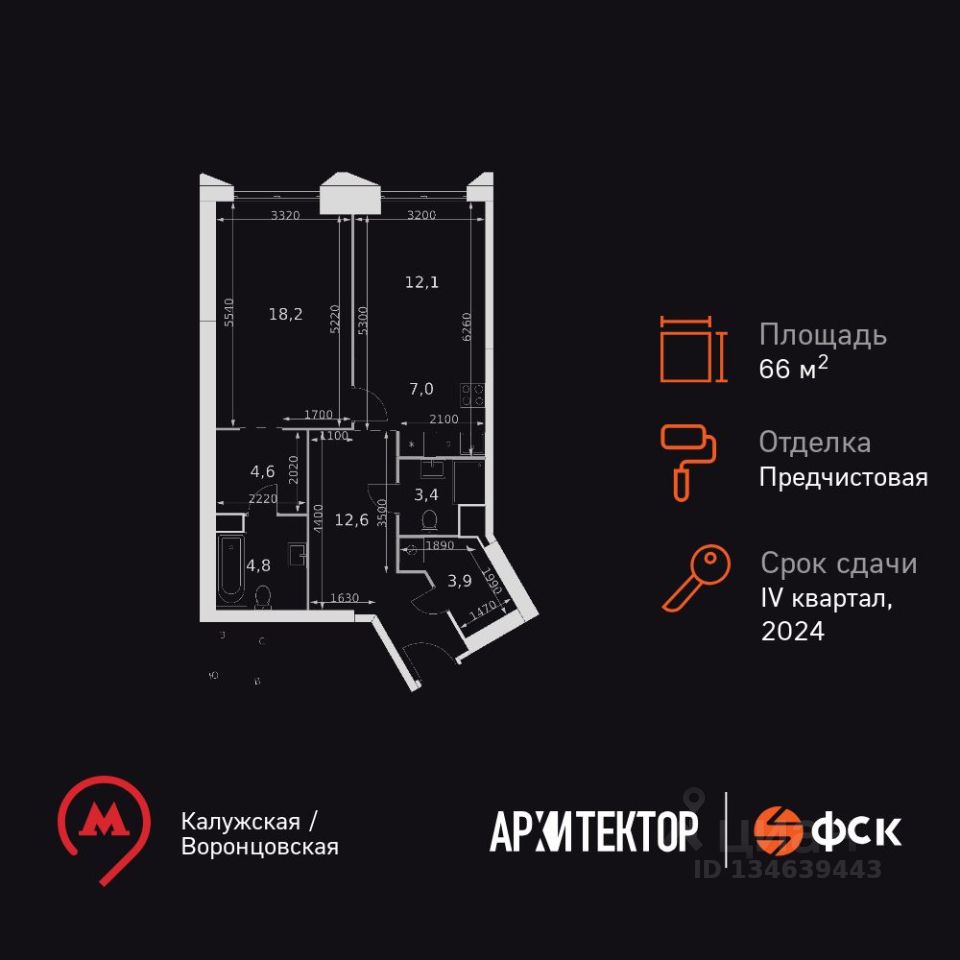 Продаётся 2-к квартира номер 1203 общей площадью 66.6 кв.м. на 33-м этаже 47 этажного дома. Отделка Whitebox. Цена с учётом скидки!