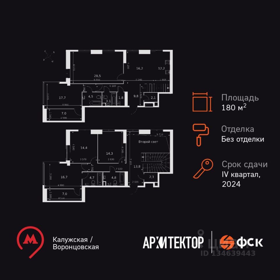 Продаётся 6-к квартира номер 882 общей площадью 180.7 кв.м. на 46-м этаже 46 этажного здания. Без отделки. Цена с учётом скидки.