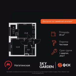 Продаётся 1-к квартира номер 672 общей площадью 35.6 кв.м. на 24-м этаже 44 этажного здания. Чистовая отделка. Цена с учётом скидки.