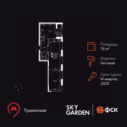 Продаётся 3-к квартира номер 900 общей площадью 78.1 кв.м. на 33-м этаже 43 этажного здания. Чистовая отделка. Цена с учётом скидки.