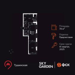 Продаётся 3-к квартира номер 972 общей площадью 78.1 кв.м. на 41-м этаже 43 этажного здания. Отделка Whitebox. Цена с учётом скидки.