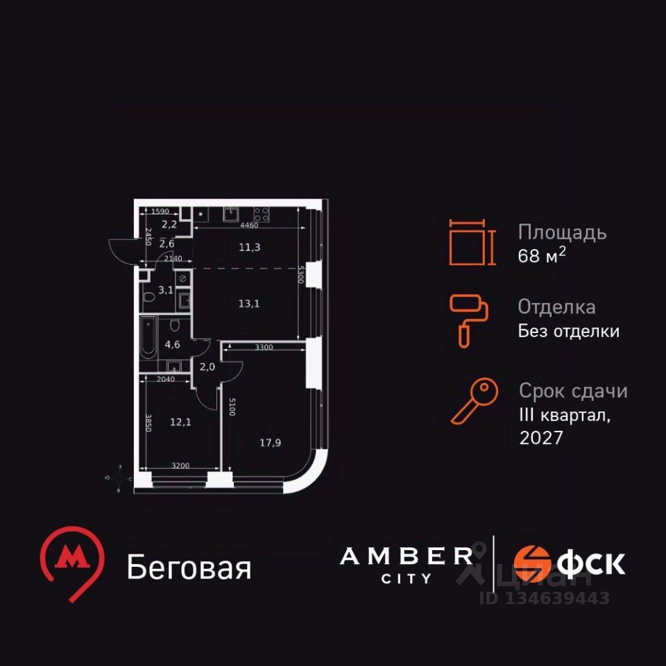Продаётся 3-к квартира номер 376 общей площадью 68.9 кв.м. на 27-м этаже 46 этажного здания. Без отделки. Цена с учётом скидки.