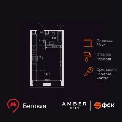 Продаётся 1-к квартира номер 6 общей площадью 33.8 кв.м. на 2-м этаже 46 этажного дома. Отделка Whitebox. Цена с учётом скидки!