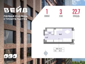 Продается квартира-студия общей площадью 22.7 кв. метров на 3 этаже жилого комплекса ВЕЙВ. Комплекс располагается на юге Москвы в районе Москворечье-Сабурово. В пешей доступности расположены станция МЦД "Москворечье" и станция метро "Борисово". Для автомобилистов есть удобное сообщение с Каширским шоссе.