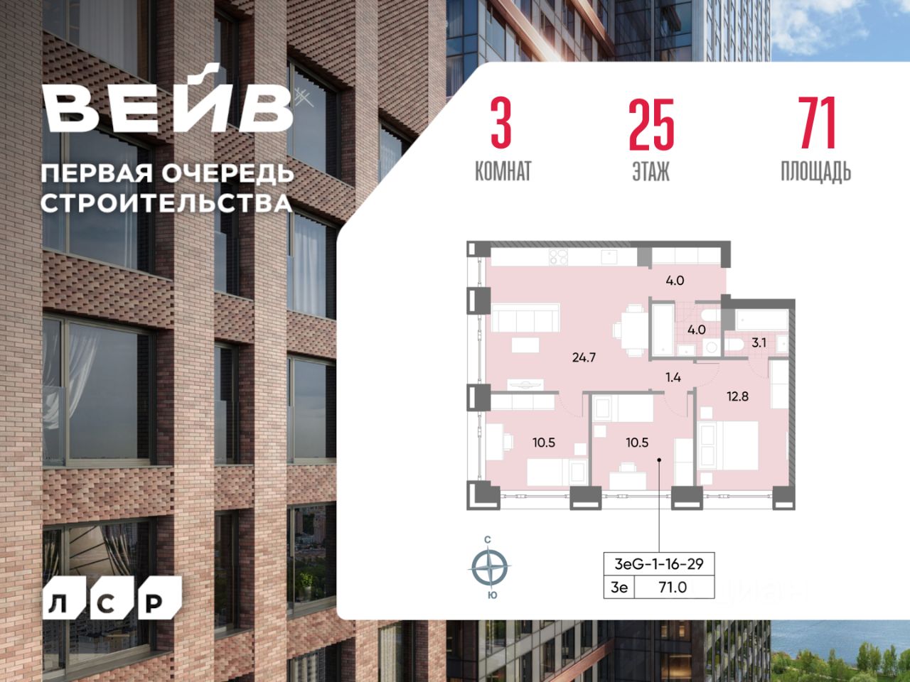 Продается 3-комнатная квартира общей площадью 71 кв. метров на 25 этаже жилого комплекса ВЕЙВ. Комплекс располагается на юге Москвы в районе Москворечье-Сабурово. В пешей доступности расположены станция МЦД "Москворечье" и станция метро "Борисово". Для автомобилистов есть удобное сообщение с Каширским шоссе.