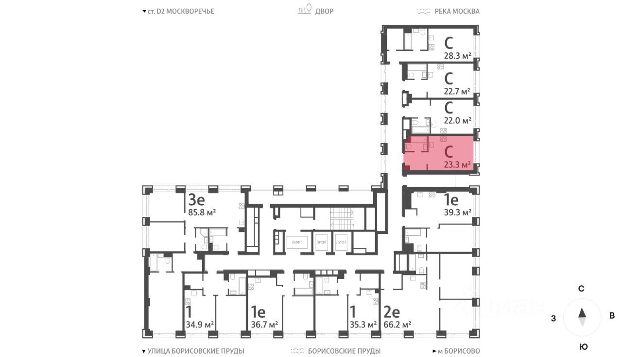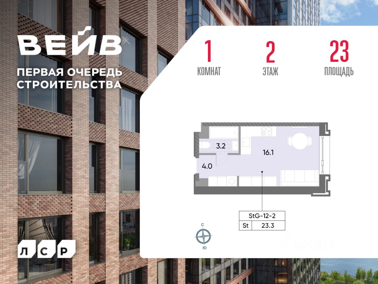 Продается квартира-студия общей площадью 23 кв. метров на 2 этаже жилого комплекса ВЕЙВ. Комплекс располагается на юге Москвы в районе Москворечье-Сабурово. В пешей доступности расположены станция МЦД "Москворечье" и станция метро "Борисово". Для автомобилистов есть удобное сообщение с Каширским шоссе.