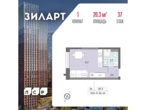Продаётся квартира-студия в доме ЗИЛАРТ СПАРК общей площадью 20.3 кв. метров на 37 этаже.