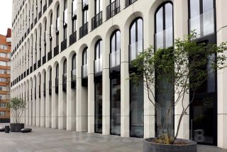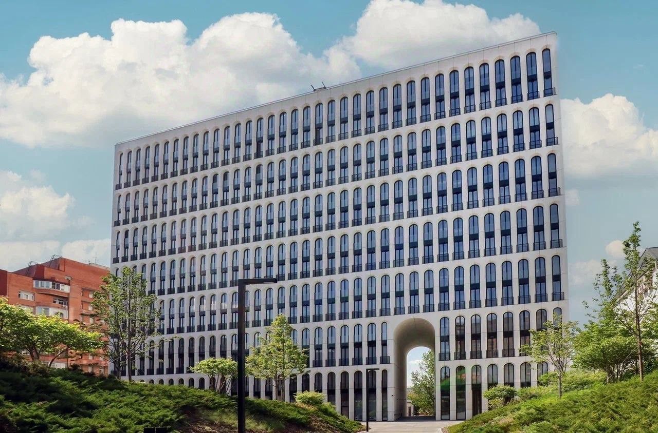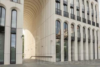 Фасад дома напоминает о многоуровневых арках римского Колизея, венецианских палаццо и одновременно возвращает нас в московские дворы с парадным входом через арку.