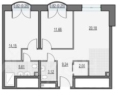 Квартира без ремонта, но по задумке застройщика тут должны быть 2 спальни, 2 санузла, гардеробная и просторная кухня-гостиная более 20 квм.