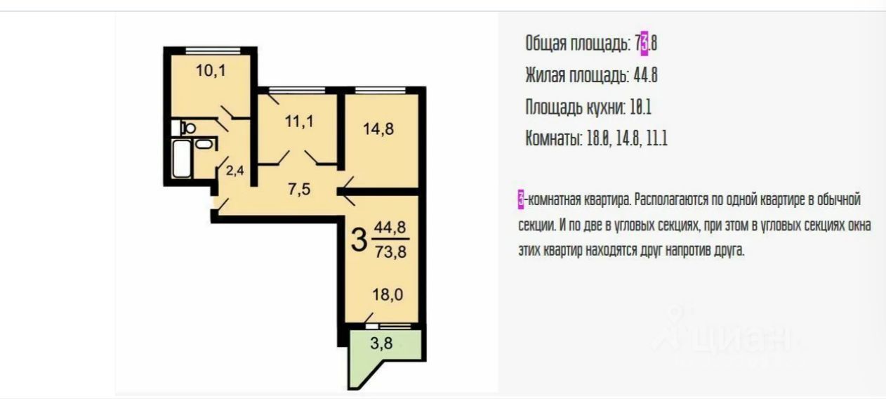 73,8 м²