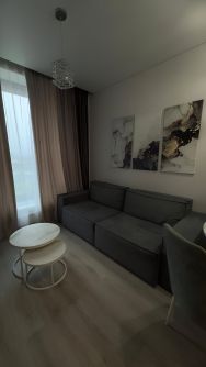 В квартире выполнен качественный евроремонт: современные материалы и стильный дизайн подарят вам комфорт и уют. Просторная кухня позволяет не только готовить с удовольствием, но и принимать гостей. Окна выходят во двор, что обеспечивает тишину и уединение. В квартире есть совмещенный санузел с современной сантехникой.
