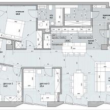 Апартаменты предлагают дизайнерский ремонт и внимательное отношение к деталям. Просторная кухня площадью 14 кв.м. станет идеальным местом для кулинарных экспериментов. В квартире есть один совмещенный и один отдельный санузел, что обеспечивает комфорт и удобство для семьи. Все окна выходят во двор, поэтому в апартаментах всегда тихо и спокойно.