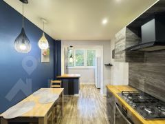 Квартира выполнена в современном стиле с качественным ремонтом, включая новую технику и продуманные дизайнерские решения. Окна выходят на зеленую зону, открывая приятный вид.