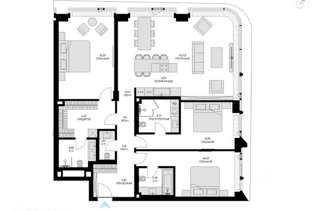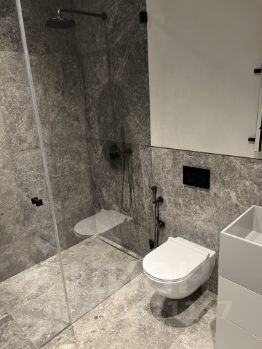 Отделка от застройщика Ant Development в стиле Неодеко с серым мрамором. Полукруглые окна выполнены фирмой