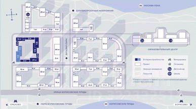 * благоустроенная набережная, ведь комплекс возводится прямо на берегу Москвы-реки;