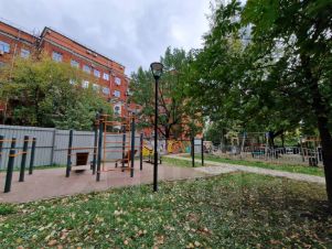Окна выходят на 3 стороны, под окнами нет ни проезжей части, ни проходной дороги. ТТК возле нас - под землей. Есть полисадник, газон, много сиреневых кустов, собачья площадка.