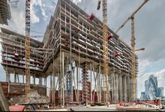 Дом будет парить на тонких 35-ти метровых белоснежных колоннах. Всего их будет 188 - из них 137 вертикальных и 51 наклонная. Установка почти завершена.
