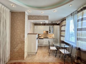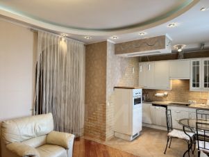 Ремонт выполнен по дизайн-проекту: светлые интерьеры, шумоизоляция, точечное освещение и многоуровненый потолок, качественная бытовая техника.