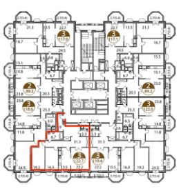 Свободная планировка без несущих перегородок. Лоджия-эркер с возможностью организовать кабинет или зимний сад. Две корзины под систему вентиляции или кондиционирования и закрытый балкон. Высокие потолки 3,05 метра усиливают ощущение масштаба. Свободная планировка дает возможность интегрировать кухню, два комфортных санузла и просторный холл, как часть дизайнерской композиции. Измерительные коммуникации выведены в специальное помещение в межквартирном пространстве для целей автоматической передачи показаний по воде, электроэнергии, теплоснабжению.