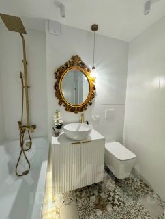 Грамотная планировка: 2 просторные спальни с кроватями с подъемным механизмом. В главной спальне гардеробная с системой хранения и выходом на светлый, утопающий в зелени балкон. Гостиная с ТВ зоной, объединенная с коридором. Уютная кухня укомплектована современной техникой (посудомойка, варочная панель, духовой шкаф, холодильник, вытяжка). Совмещенный, дизайнерский санузел с ванной, стиральной машиной и системой хранения.
