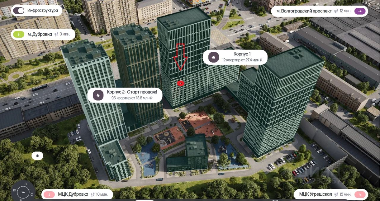 Продается квартира в ЖК бизнес-класса "MYPRIORITY Дубровка". Рядом метро Дубровка (3 мин) и метро Волгоградский проспект (7 мин).