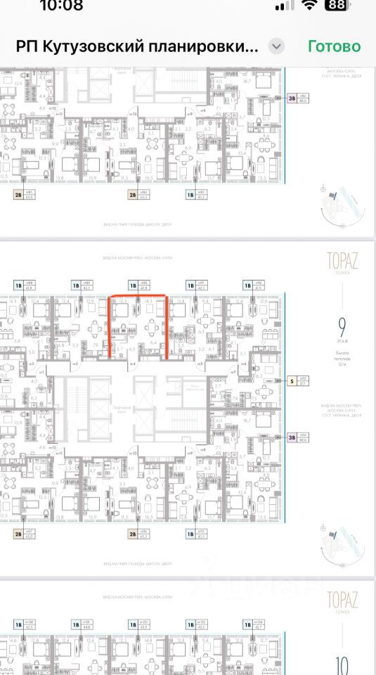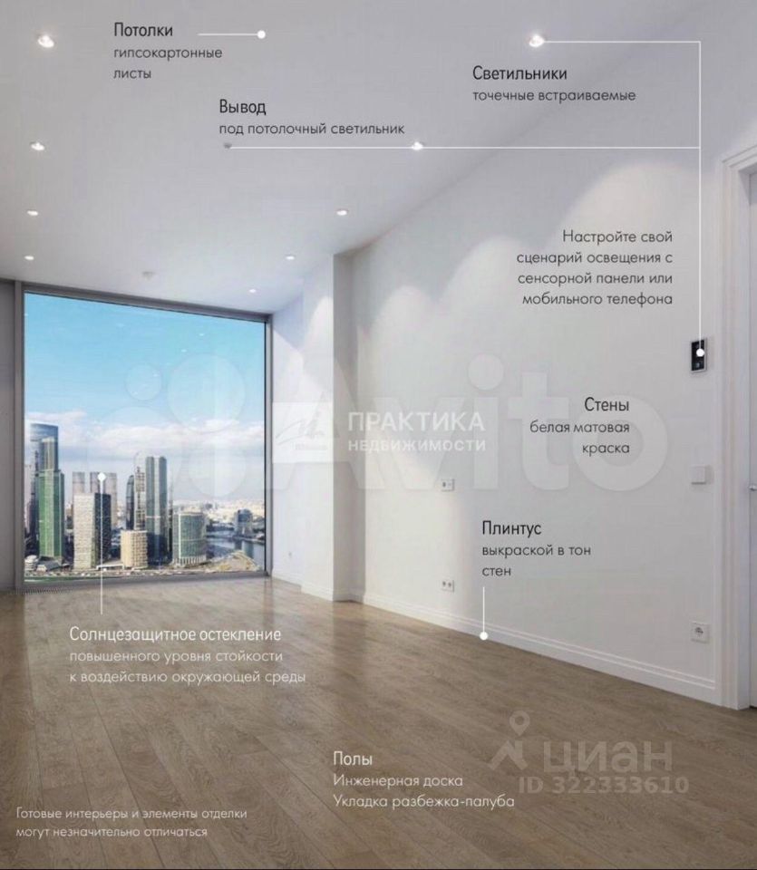 Девятый этаж башни топаз, с видом на Москву реку и Москва-Сити, с отделкой светлый SUN как на фото. сдача объекта третий квартал 2026г