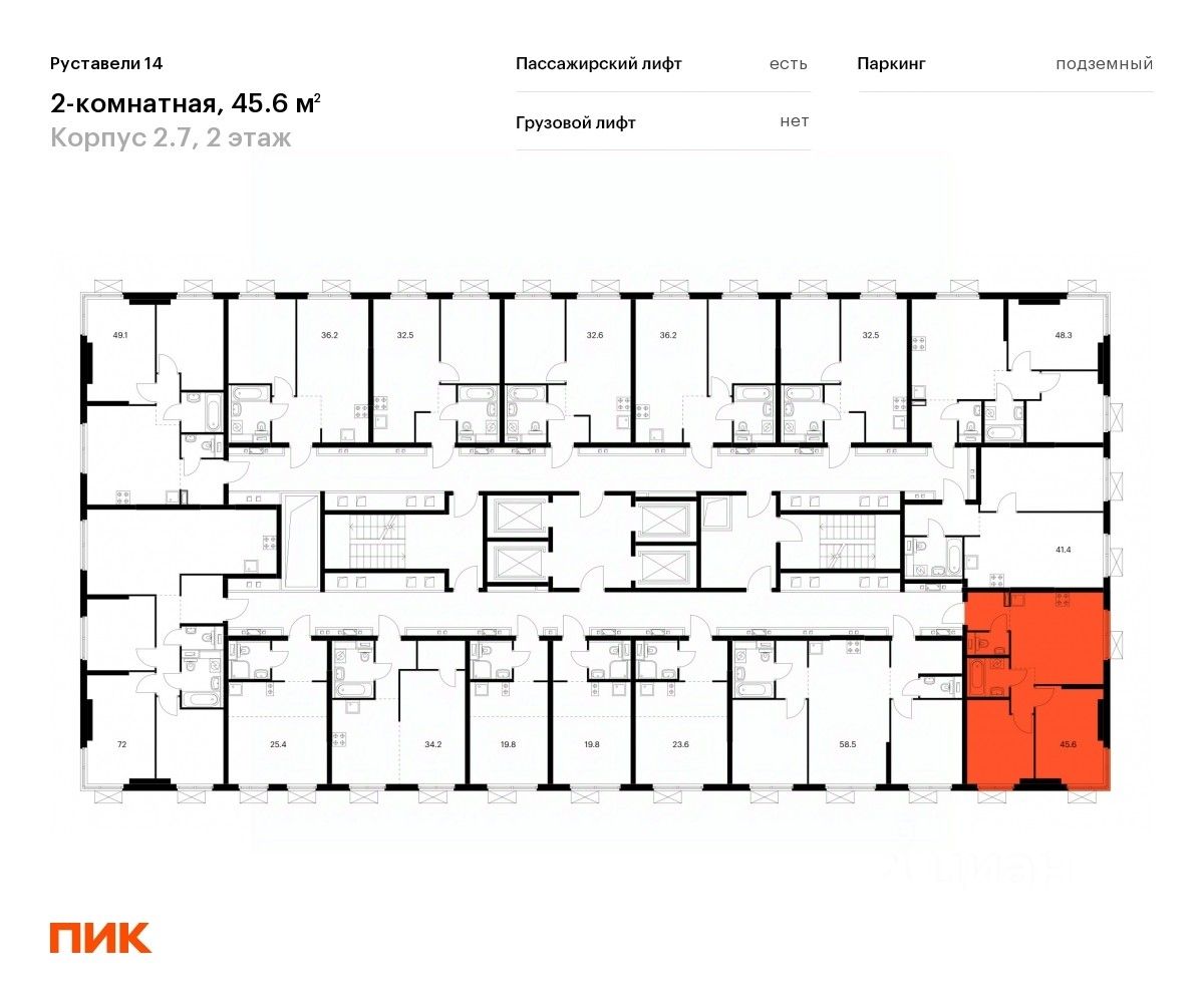 Продаётся 2-комн. квартира площадью 45,7 кв.м на 2 этаже 33 этажного дома (Корпус 2.7, Секция 3) проекта ПИК Руставели 14. Светлый просторный подъезд на уровне земли, функциональная планировка, большие окна, c отделкой.