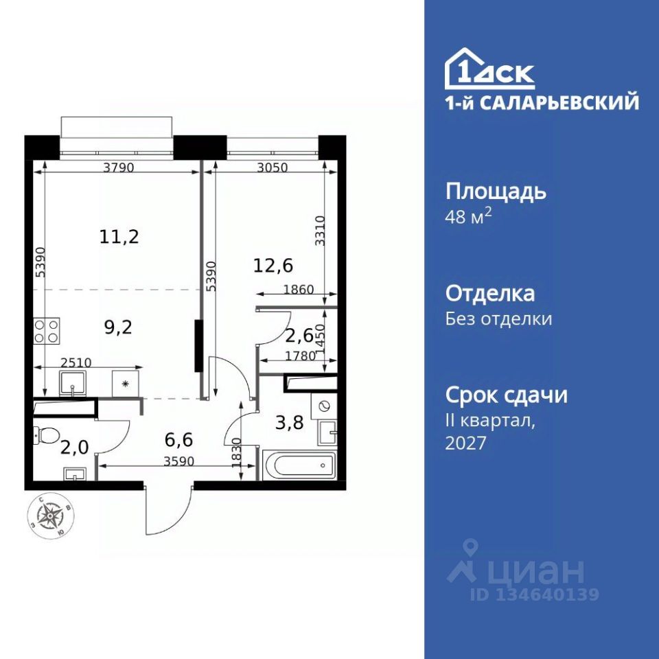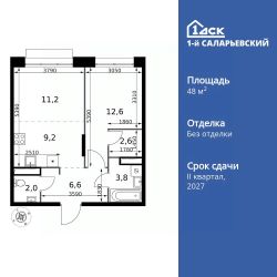 Продаётся 2-к квартира номер 434 общей площадью 48 кв.м. на 4-м этаже 21 этажного здания. Без отделки. Цена с учётом скидки.