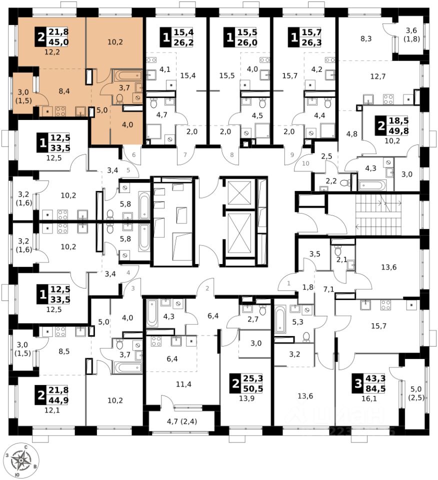 Продаётся 2-к квартира номер 196 общей площадью 45 кв.м. на 21-м этаже 21 этажного дома. Без отделки.
