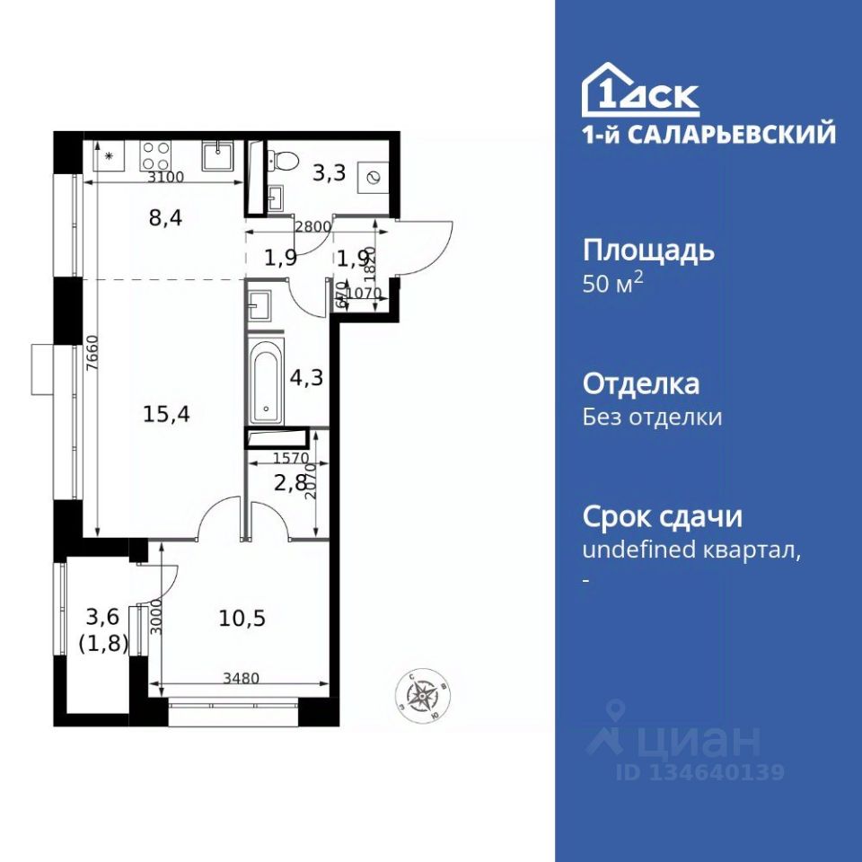 Продаётся 2-к квартира номер 594 общей площадью 50.3 кв.м. на 21-м этаже 21 этажного дома. Без отделки.