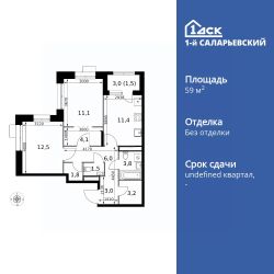Продаётся 2-к квартира номер 347 общей площадью 59.9 кв.м. на 18-м этаже 25 этажного дома. Без отделки.