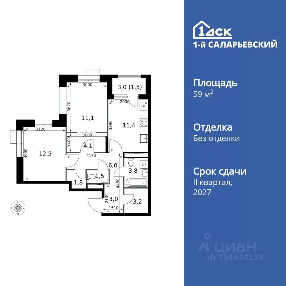 Продаётся 2-к квартира номер 347 общей площадью 59.9 кв.м. на 18-м этаже 25 этажного здания. Без отделки. Цена с учётом скидки.