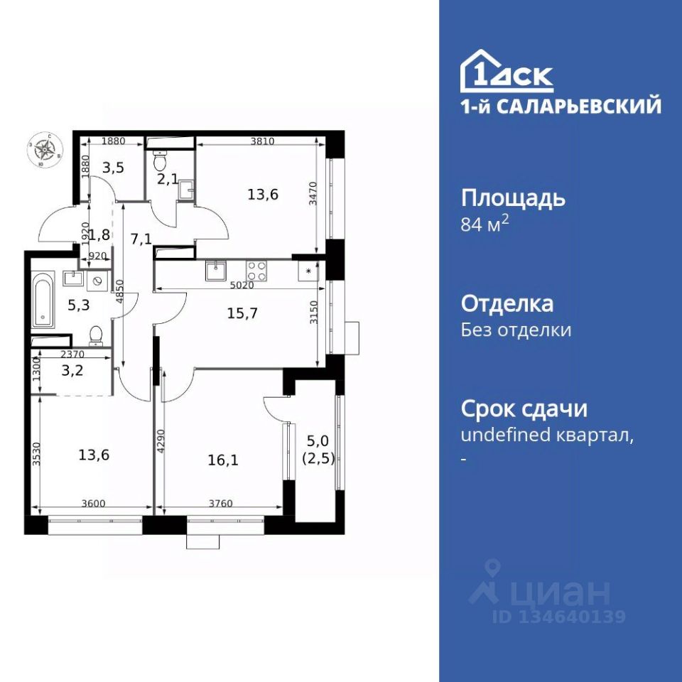 Продаётся 3-к квартира номер 191 общей площадью 84.5 кв.м. на 21-м этаже 21 этажного дома. Без отделки.