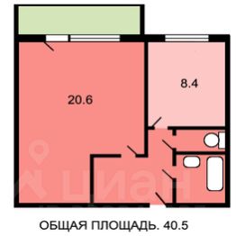 Продается 2/3 квартиры, 40,5/20,6/8,4 м²