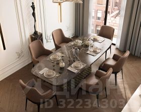 В квартире большая кухня-гостиная 37 м2 с дорогой кухней из шпона и эмали, сделанной под заказ именно для этой квартиры. Кухня полностью укомплектована техникой Miele, Asko.