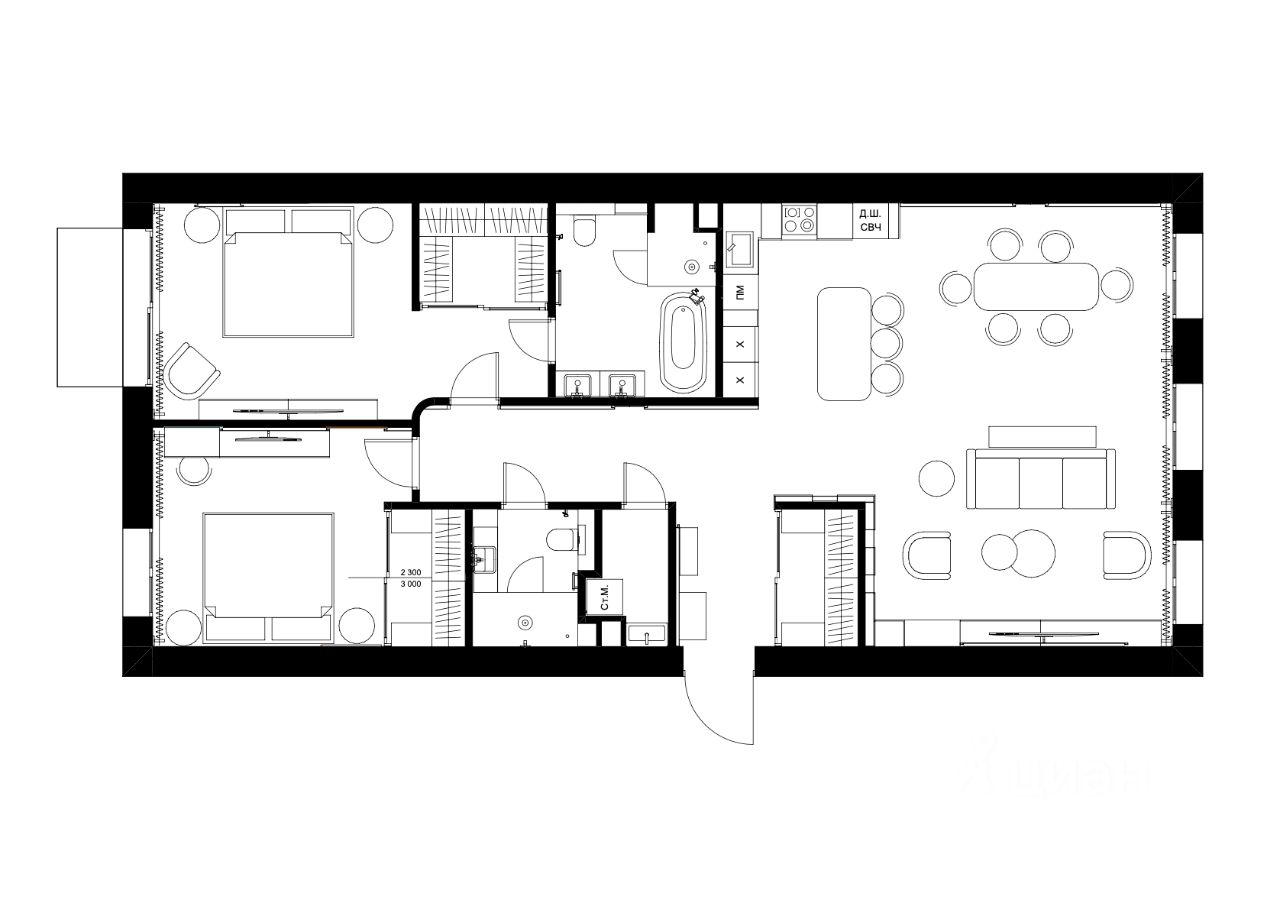 Квартира общей площадью 125 кв. метра с функциональной планировкой: