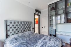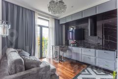 В квартире выполнен дизайнерский ремонт в стиле арт-деко. Красивые высокие двери, много зеркал и встроенных элементов. В квартире есть две 2 спальни с полноценными кроватями (размеры: 160*220 и 140*210), со встроенными шкафами и 2 санузла, что удобно для большой семьи, а также большая гардеробная отдельно стоящая и в коридоре вместительные встроенные шкафы для навески сезонной одежды, полки выдвижные для обуви, сумок и мелких вещей. Окна выходят на долину реки Сетунь, обеспечивая хорошее естественное освещение. Приятный бонус — высота потолков 3 метра, что придаёт ощущение простора и свободы.