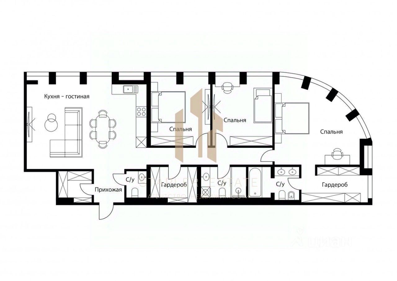 ВАШЕМУ ВНИМАНИЮ ПРЕДЛАГАЮТСЯ АПАРТАМЕНТЫ В ЖК " Sky View ". Возможное планировочное решение: просторная кухня-гостиная, мастер-спальня со своими с/у и гардеробной, гостевой санузел, две комнаты,со своими с/у и гардеробными комнатами.Одиннадцать окон "в пол" наполняют все пространство апартаментов светом.