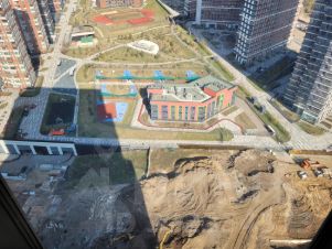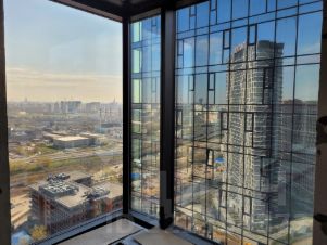 На двадцать девятом этаже тридцати двухэтажного дома располагается просторная тёплая светлая квартира с направлением окон на Северо-Запад, Северо-Восток, Восток, Юг. Первая половина квартиры освещается с раннего утра и до полудня, после чего освещение переходит на вторую половину квартиры и продолжается до конца дня.