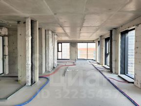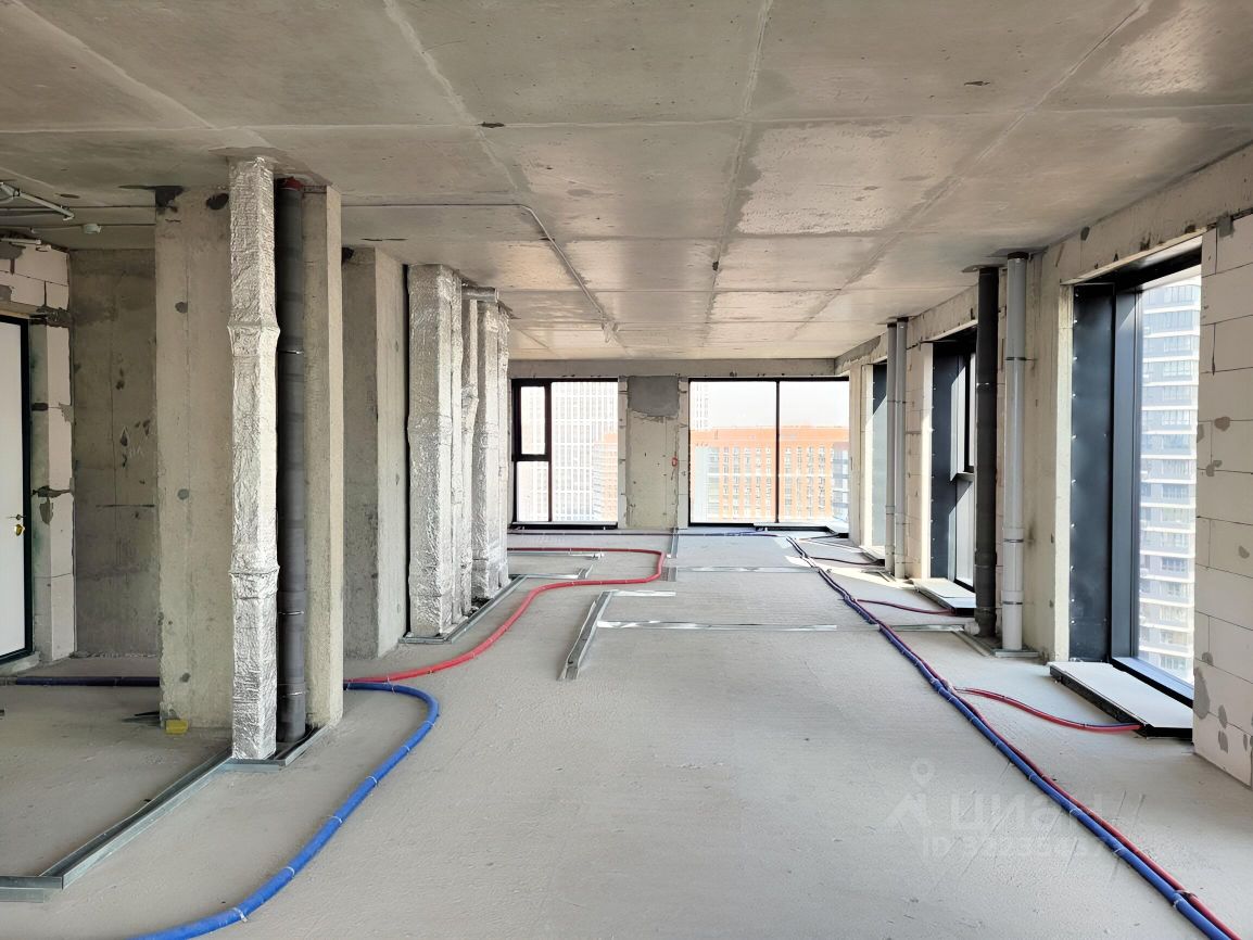Планировка свободная, по полу очерчены предполагаемые границы кухни-гостиной, трёх спальных комнат, двух совмещённых санузлов и гардеробной.